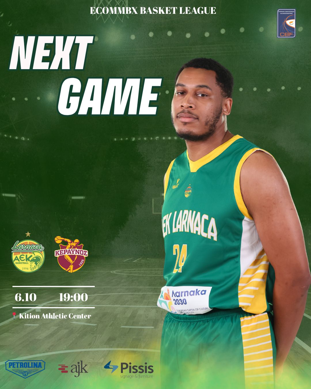 Η Πετρολίνα ΑΕΚ αρχίζει την ECOMMBX Basket League με ένα μεγάλο ντέρμπι. Στην πρεμιέρα του πρωταθλήματος, η ομάδα μας αντιμετωπίζει τον Κεραυνό Στροβόλου τη Δευτέρα (06/10, 19:00) στο «Κίτιον».