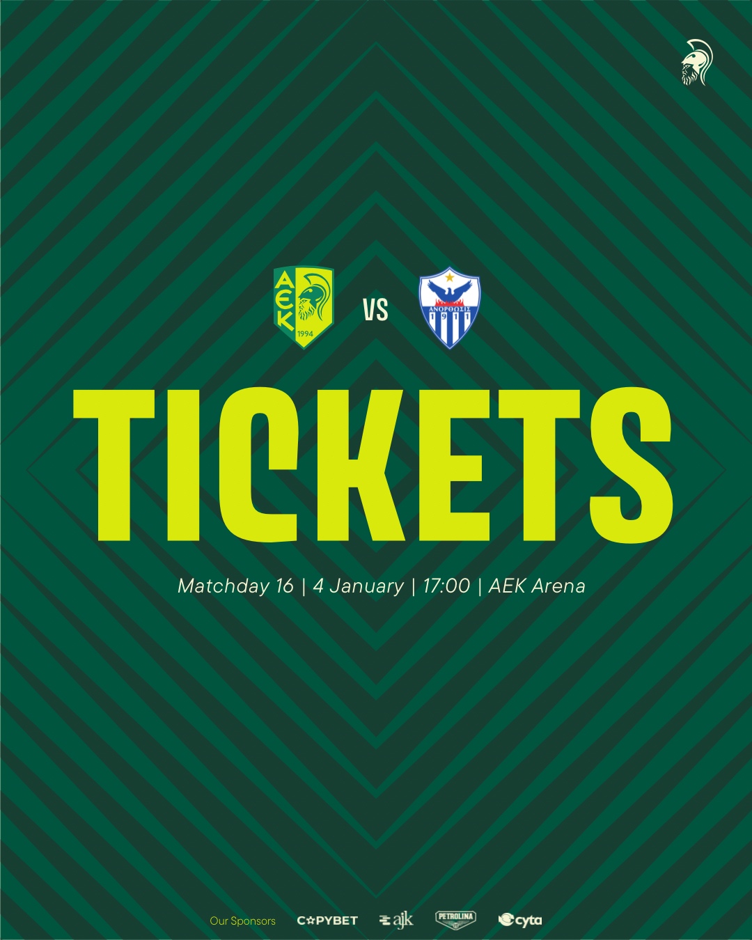 Η προπώληση εισιτηρίων ξεκίνησε σήμερα (12/12) ηλεκτρονικά και από το AEK Store. 👉 [Πατήστε EΔΩ για ηλεκτρονικές αγορές εισιτηρίων].