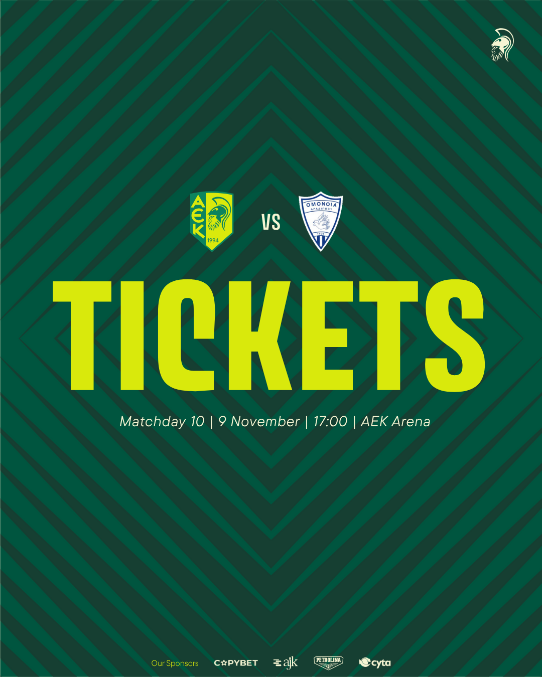 Η ΑΕΚ LARNACA FC LTD ενημερώνει το φίλαθλο κοινό για τις λεπτομέρειες της προπώλησης εισιτηρίων του αγώνα της 10ης αγωνιστικής του πρωταθλήματος με αντίπαλο την Ομόνοια Αραδίππου, ο οποίος θα διεξαχθεί την Κυριακή (09/11, 17:00) στο AEK ARENA.