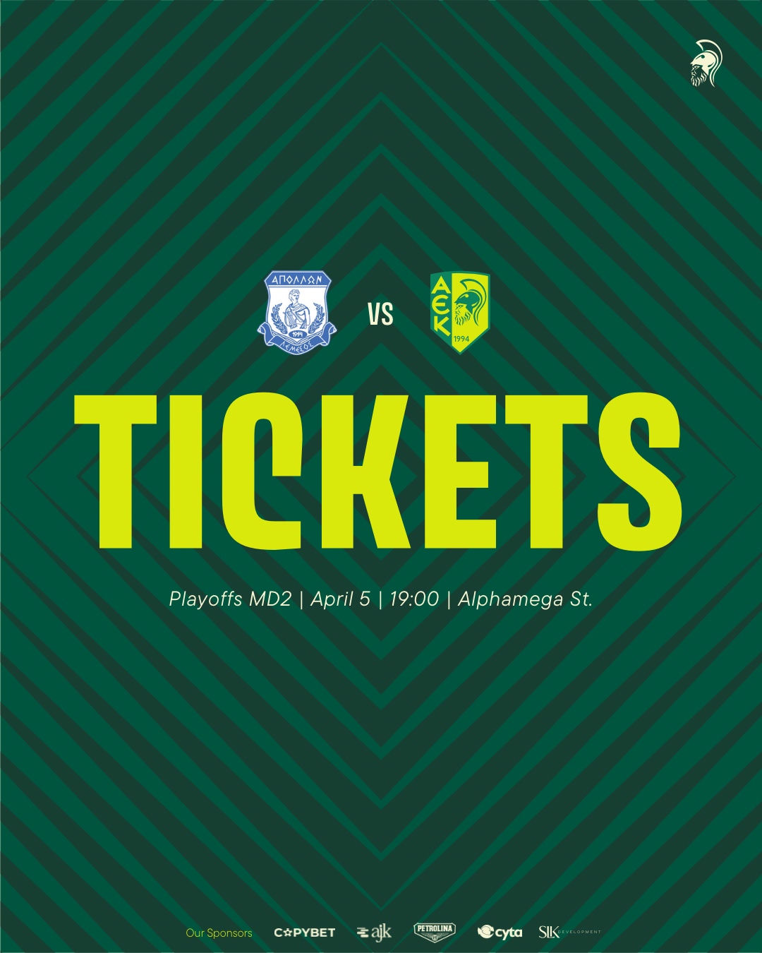 Η ελεύθερη διάθεση των εισιτηρίων θα ξεκινήσει την Πέμπτη (02/04, 15:00), τόσο από το AEK Store, όσο και ηλεκτρονικά.