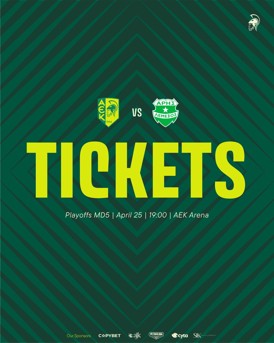 Η προπώληση εισιτηρίων θα ξεκινήσει σήμερα Τρίτη (21/04, 10:00) ηλεκτρονικά και από το AEK Store. 👉 [Πατήστε ΕΔΩ για ηλεκτρονικές αγορές εισιτηρίων].