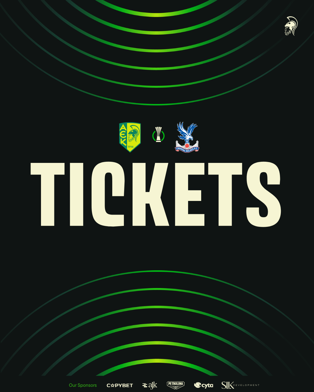 Η AEK LARNACA FC LTD ενημερώνει για τις λεπτομέρειες της προπώλησης των εισιτηρίων για τον επαναληπτικό αγώνα της φάσης των 16 του UEFA Conference League με αντίπαλο την Crystal Palace FC (Πέμπτη, 19/03, 19:45) στο AEK ARENA.