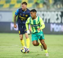 Στο πρώτο ημίχρονο ο ρυθμός δεν ήταν ιδιαίτερα γρήγορος, ενώ δεν είχαμε πολλές μεγάλες φάσεις μπροστά από τις δύο εστίες. Η ομάδα μας απείλησε με τους Angielski (18'), Ekpolo (26', 37') και τελικά στο 42ο λεπτό μπήκε σε θέση οδηγού στο σκορ, με τον Angielski να τροφοδοτά τον Chacon και αυτός με ψύχραιμο πλασέ να στέλνει την μπάλα στα δίκτυα.