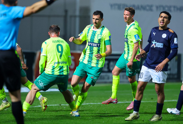 Στο πρώτο ημίχρονο η ομάδα μας ανέλαβε από την αρχή τα ηνία της αναμέτρησης και απείλησε με Mudrazija (10'), Ivanovic (20'), Cabreera (43'), ενώ ενδιάμεσα είχε δύο δοκάρια με τον Ivanovic (25') και με τον Cabrera (34'), Στο 2ο λεπτό των καθυστερήσεων αποβλήθηκε με 2η κίτρινη ο Andereggen.