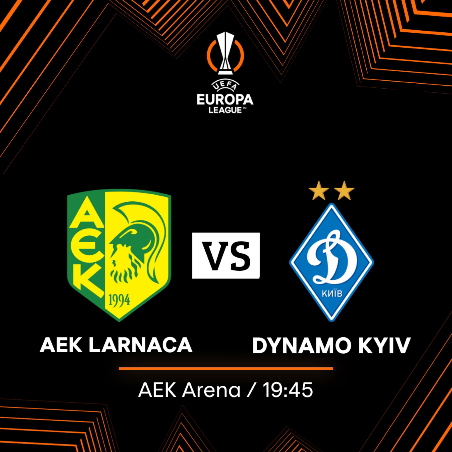 H Αθλητική Ένωση Κίτιον (ΑΕΚ) Λάρνακας ενημερώνει το φίλαθλο κοινό για τις λεπτομέρειες που αφορούν τον αγώνα της 5ης αγωνιστικής του Β' Ομίλου του Europa League με αντίπαλο την Dynamo Kyiv στο ΑΕΚ ARENA, που θα διεξαχθεί σήμερα Πέμπτη 27 Oκτωβρίου στις 19:45.
