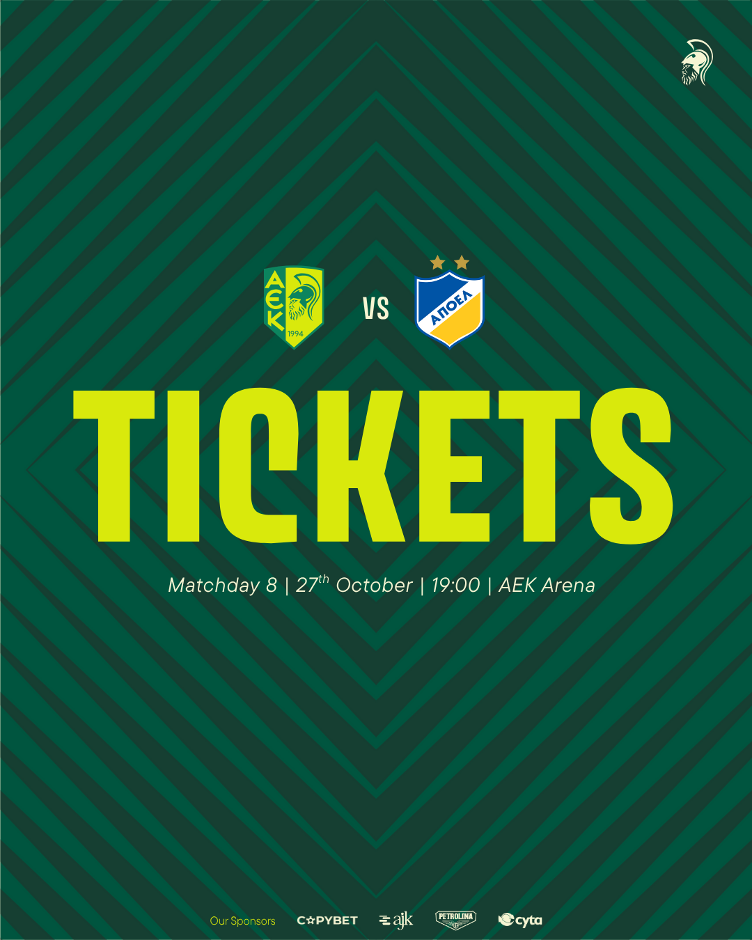 Η προπώληση εισιτηρίων ξεκίνησε σήμερα Τετάρτη (22/10) ηλεκτρονικά και αύριο (23/10) από το AEK Store. 👉 [Πατήστε EΔΩ για ηλεκτρονικές αγορές εισιτηρίων].