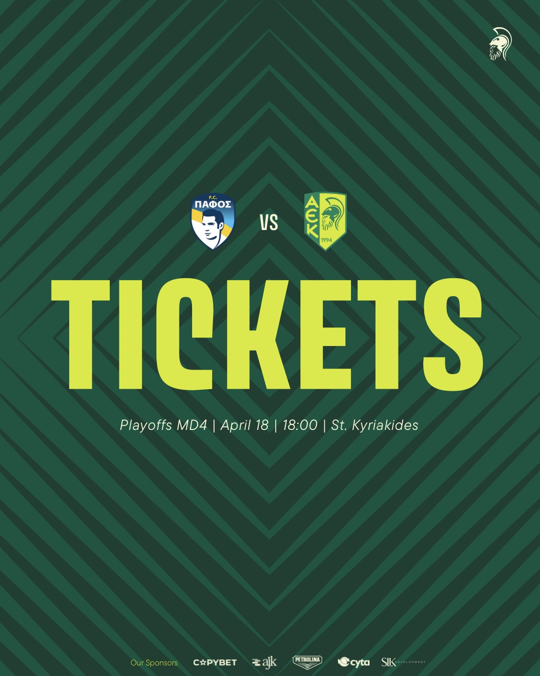 Η προπώληση θα ξεκινήσει αύριο Πέμπτη (16/04) ηλεκτρονικά και από το AEK Store. 👉[Πατήστε EΔΩ για ηλεκτρονικές αγορές εισιτηρίων].