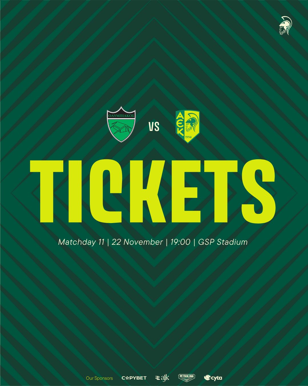 Η προπώληση έχει ξεκινήσει ηλεκτρονικά και από το AEK Store. 👉 [Πατήστε ΕΔΩ για ηλεκτρονικές αγορές εισιτηρίων]